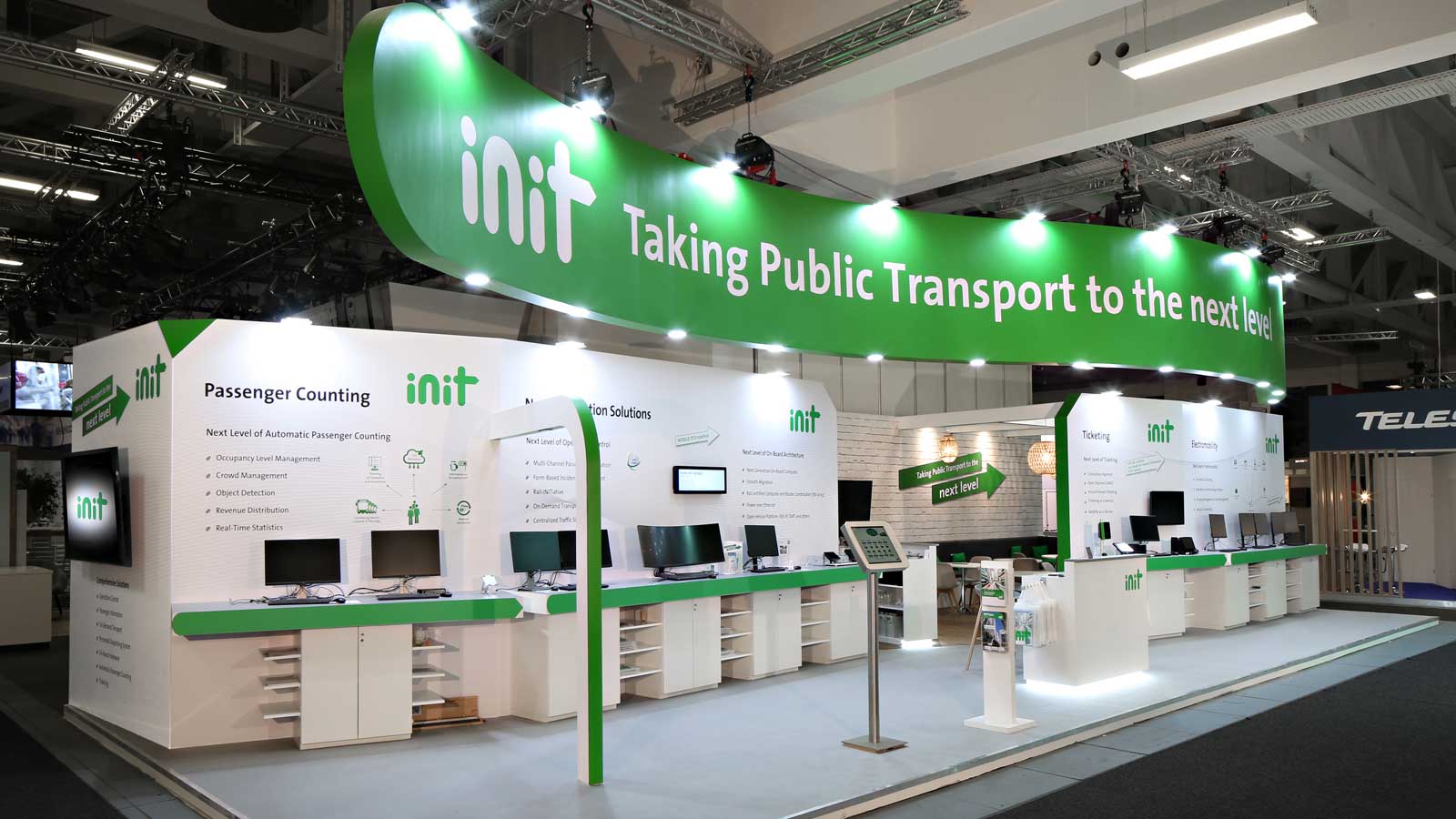C’est ainsi que depuis 2016, Init nous confie les clés de ses stands, déclinables, adaptables et réutilisables événement après événement. Ce n’est pas tout ! Cette méthodologie permet d’implémenter efficacement des technologies adaptées aux environnements, pour des espaces allant de 15 à plus de 100m2.
